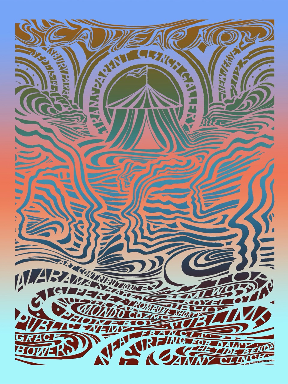 Poster features the lineup of artists included in the transparent clinch gallery pop up art tent at sea.hear.now 2025 - $65 (LOCAL PICKUP ONLY)